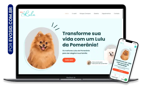 Site criado totalmente personalizado para o canil Meu Lulu, transmitindo paixão pela raça e facilitando a geração de leads qualificados.