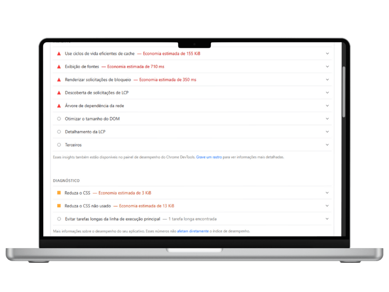 Nessa etapa de diagnóstico, já identifico os principais gargalos que impedem a otimização de performance para sites WordPress, como excesso de plugins, temas pesados e configurações de hospedagem inadequadas.